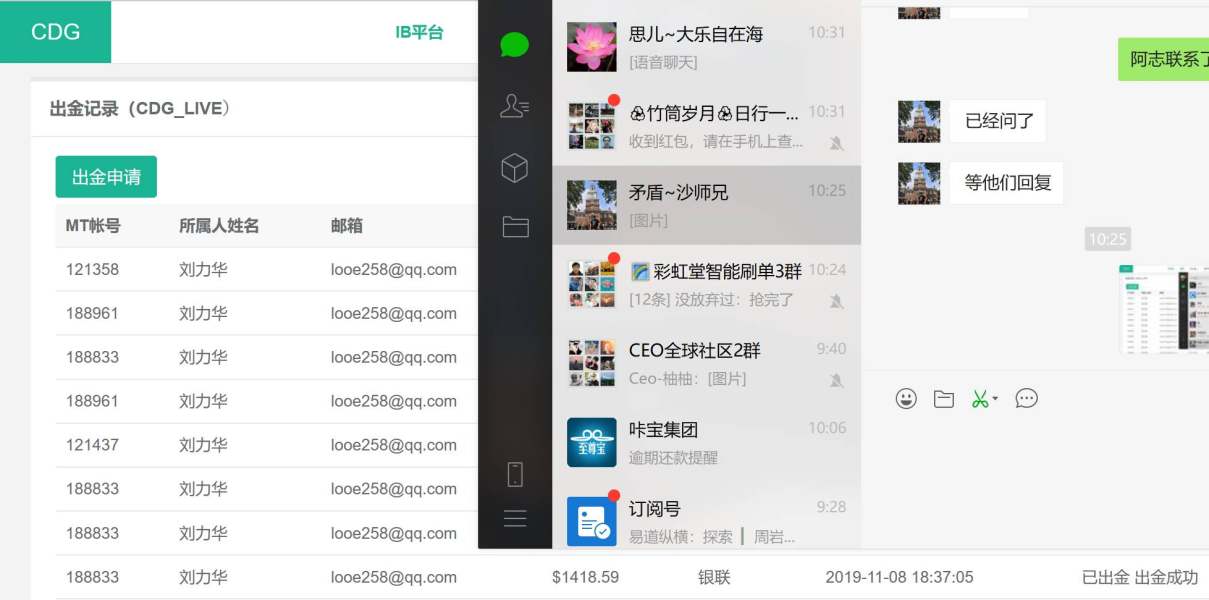 我叫刘力华11月8号出金1418.59美金,系统显示出金成功,但是到现在还没到账