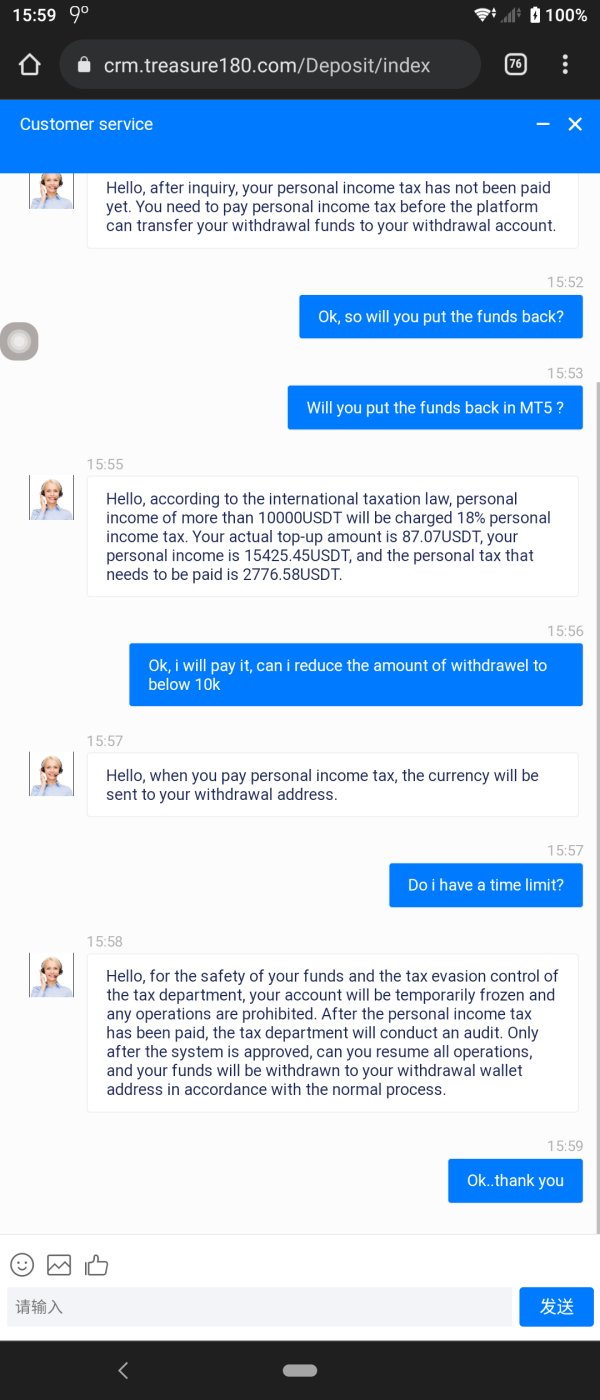 On the 22 November i asked to retire 12k from my MT5 to my Binance account. It never arrived. I was subsequently asked to pay exorbitant fees to an unknown wallet address. When i told them that this was not correct, the customer service's reply was "have a nice life". They said i had to pay the 18 percent fees as personal tax, a percentage i had never heard of before. I have been reading about scams and fraud all over the net, and this is one of them. I am a British citizen, and this is a British company. I only want fairness. Please sort this matter out.