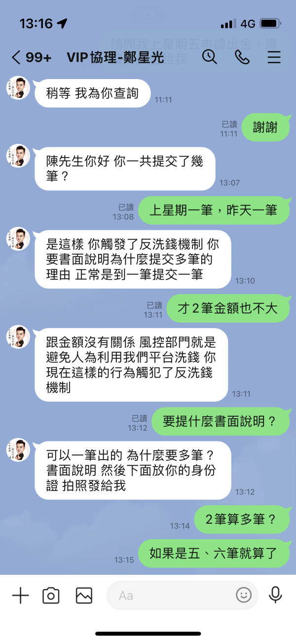 無法出金,上星期提交一筆出金,一直無法出金直到這星期在提交一筆出金,說什麼反洗錢機制,根本就是無法出金