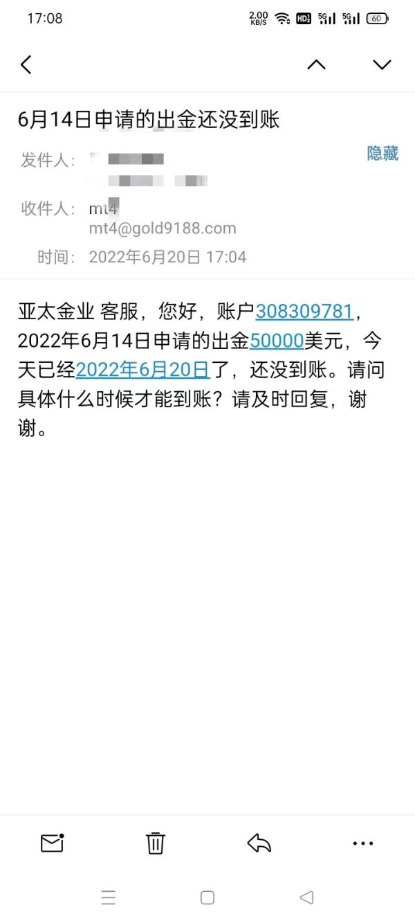 举报!香港亚太金业,香港金银业贸易场会员号:88,本月出金无法到账,长时间显示审核中已经1周了,公司经营状况出现严重问题,客户出金无法到账,请协助解决,感谢!