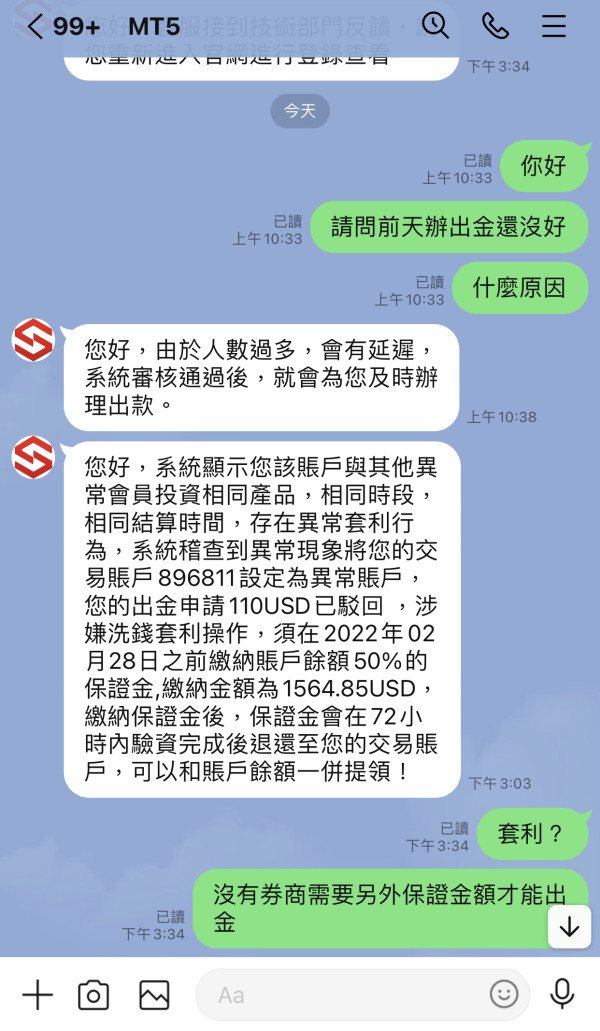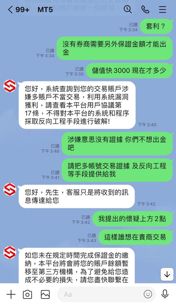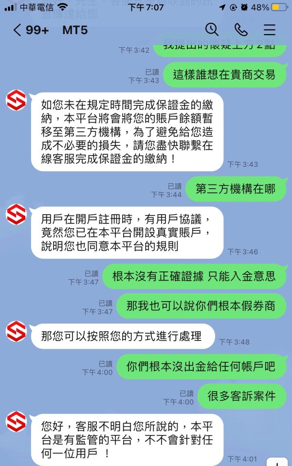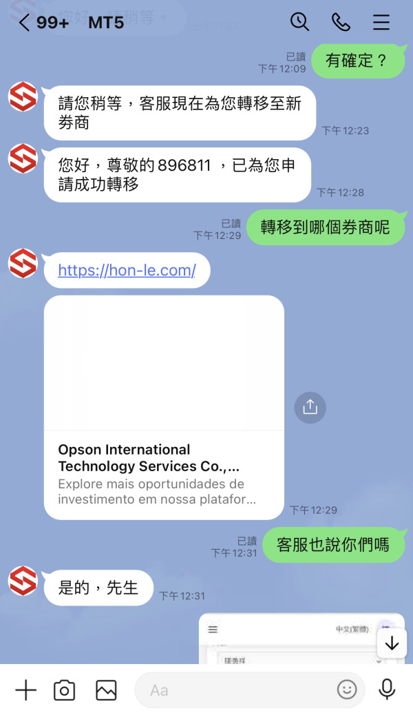 下圖有本人帳號(官網與軟體) 本來在SICH交易後突然得知換卷商在OPSON,經在天眼上比對兩家卷商持牌機構信箱是一樣的,且經所謂的客服根本是同樣的,目前還無法出金,要額外繳保證金,請協助處理。