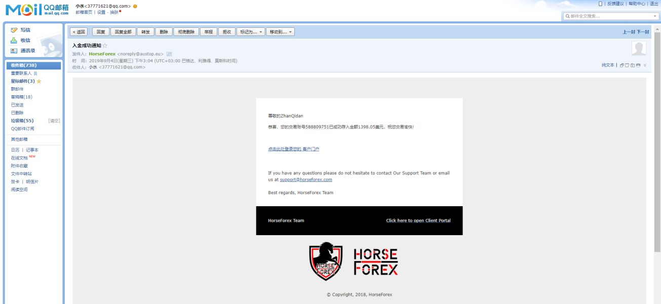 本人9月4号,入金Horseforex · 马汇 30000人名币,出金时候 账户被禁用,后台无法登入,交易账户 账号: 5******78 主密码: 0*****P 请广大汇友小心,这个平台绝对是诈骗平台,本人将报案处理,