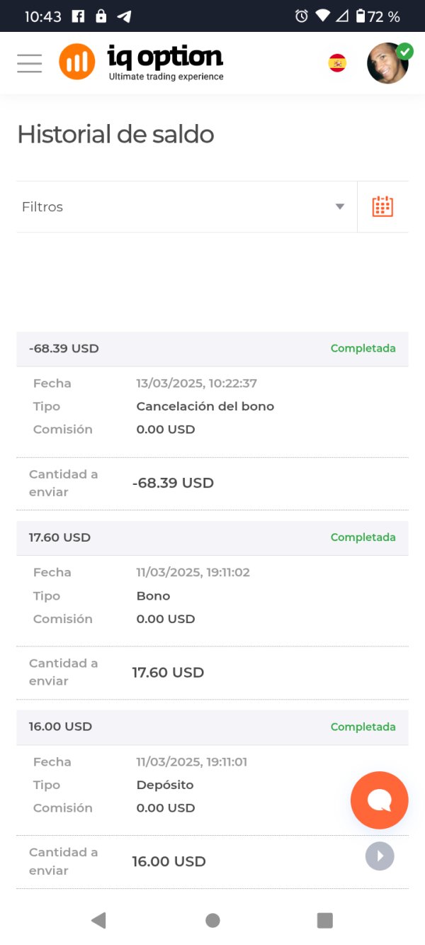 El día 11 de este mes me llegó un correo de un bono por depósito en la app yo deposite 16 dólares y recibí 17.60usd de bono estube operando y luego de llegar a 68.39usd decidí cancelar mi bono el día 13 los términos decías que si cancelaba el bono solo se deduciria de mi cuenta los 17.60usd de mi cuenta y las ganancias no se tocarían pero al cancelar mi bono mi cuenta quedó en cero eh tratado de contactar con soporte desde ese día y nadie me responde ni me da una respuesta clara de por que pasó eso y siempre me quedo esperando la respuesta de soporte y aún nada espero que eso se pueda solucionar