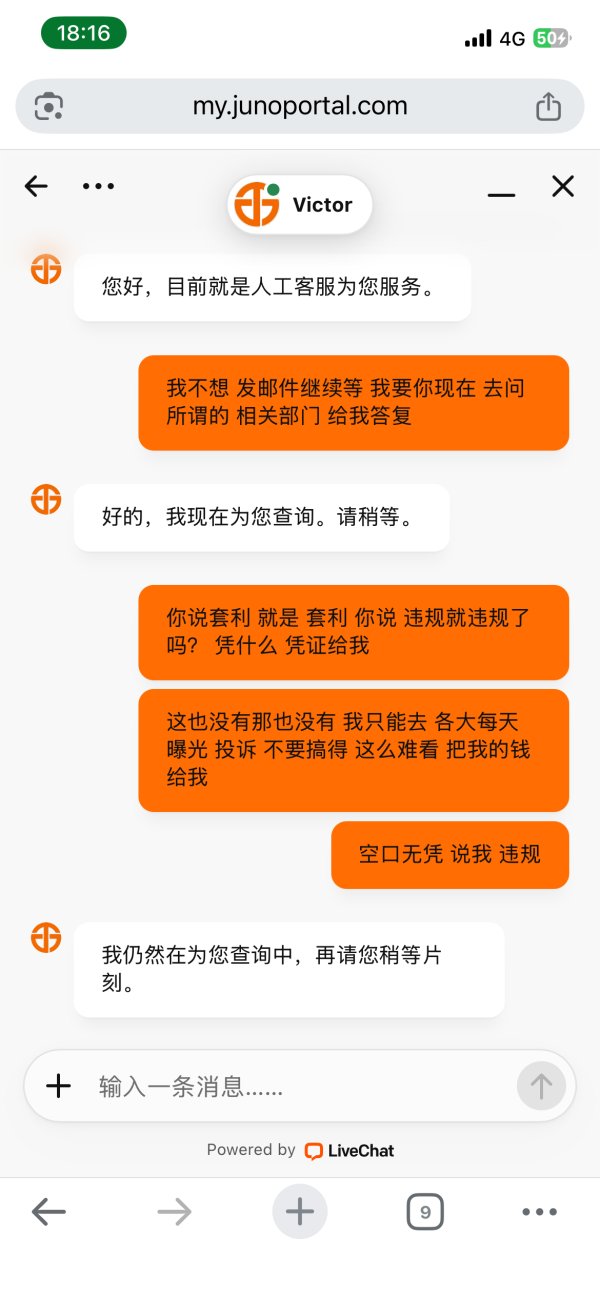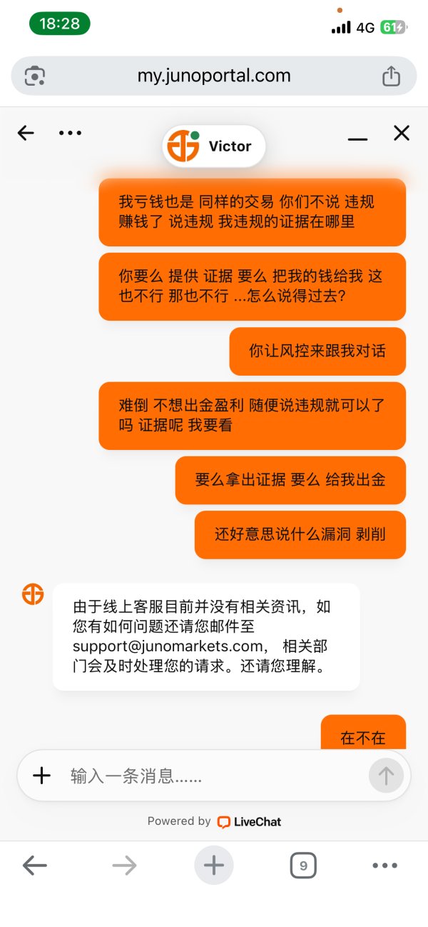 君诺这个 黑平台 亏钱了啥事儿没有 .盈利了不给出金. 说违规交易 信用金套利 但是没有证据表明我违规 .联系客服 让我发邮件 邮件发出去 没有回复. 死皮赖脸的就是 不给出金 . 同样的操作亏空了 没事 赚钱就是 不给 到后来 后台直接进不去