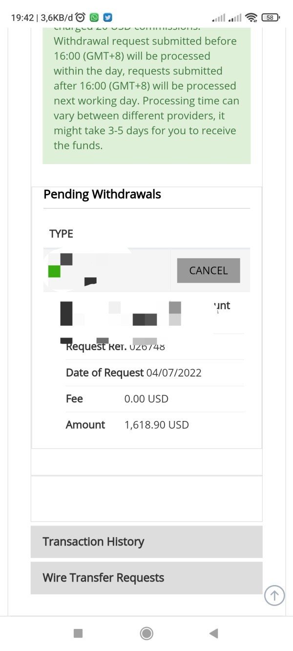 sudah mengajukan penarikan sejak 4 Juli, dan sudah lebih sebulan pengajuan tidak di setujui. sudah mengirimkan pesan ke support namun tidak kunjung di balas. sebelumnya sudah memotong rebate milik saya sebesar 2.000$. broker tak terpercaya