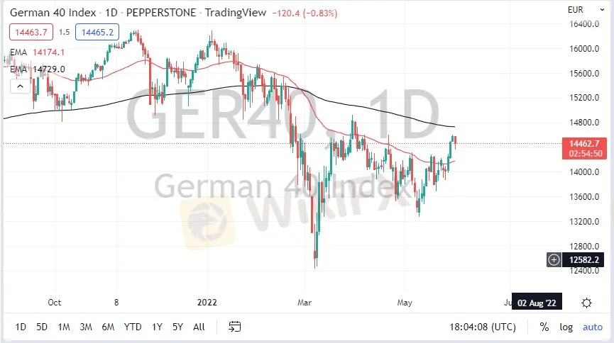 Abstract:The DAX fell a bit on Tuesday to break down below the €14,400 level, giving back some of the gains from the recent surge higher. The DAX I had gotten rather close to the 200-day EMA, which has a major influence on longer-term traders. Furthermore, there was quite a bit of horizontal resistance in this area, so it’s not a huge surprise to see that we gave up some gains. Furthermore, a lot of the fundamental situation has not changed so one has to wonder whether or not this was a “bear market rally” to begin with.