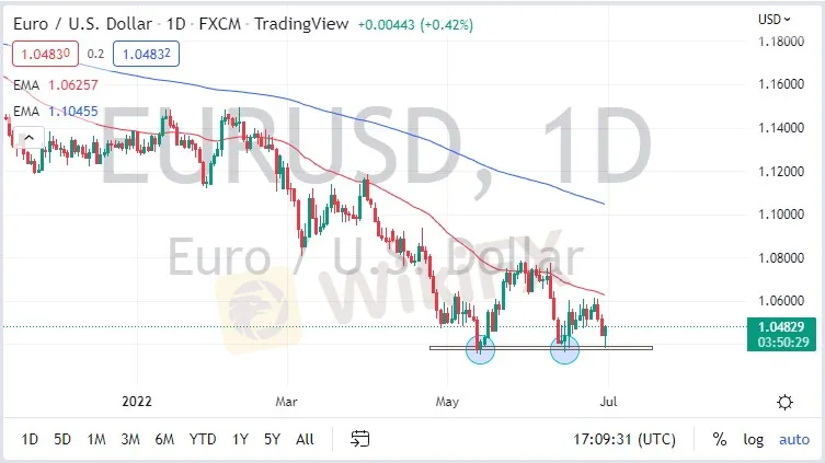 The Federal Reserve is going to continue to tighten monetary conditions, which of course strengthens the US dollar overall. Furthermore, we have to keep in mind that the overall trend is to the downside, in trends in the Forex market dont change very often. You continue to fade rallies in this market, you continue to get paid. The 1.04 level is stubborn, but you could have said the same thing about the 1.12 level, and perhaps even the 1.08 level.