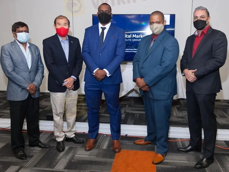 (from left) Reynold Ajodhasingh, director, International Financial Company (IFC) and Richard Young, IFC chairman with Capital Markets Elite Groups Duke Pollard, CEO and founder; Rory Ellis, chairman; and Sedonio Anthony De Silva, COO.
