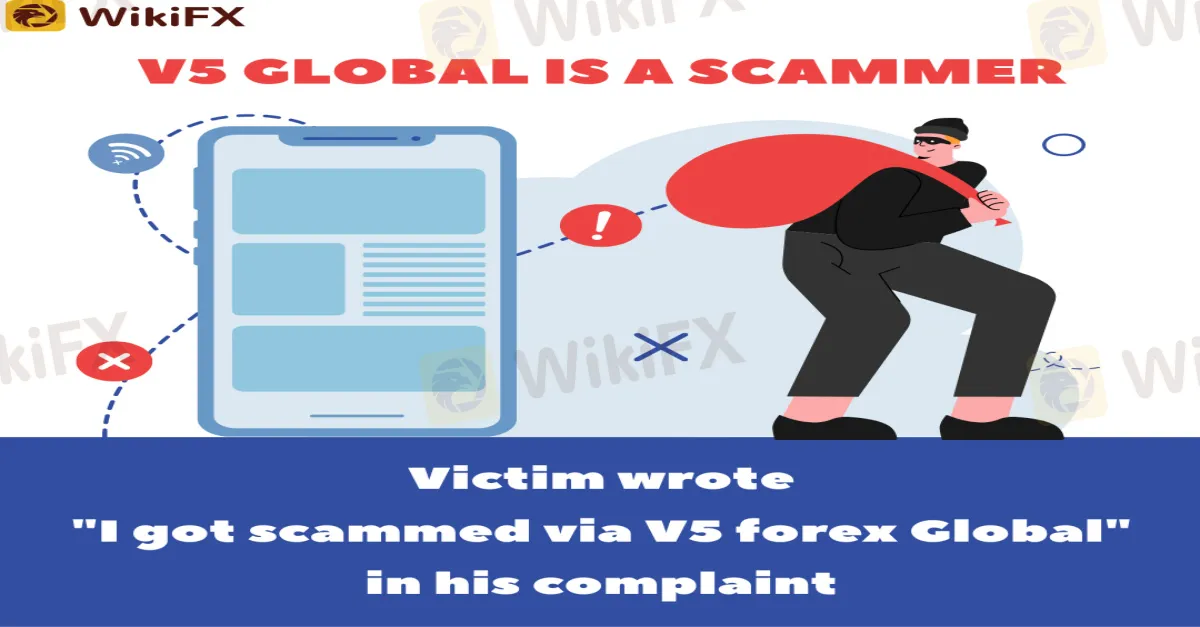 Victim wrote "I got scam via V5 Forex Global" in his complaint