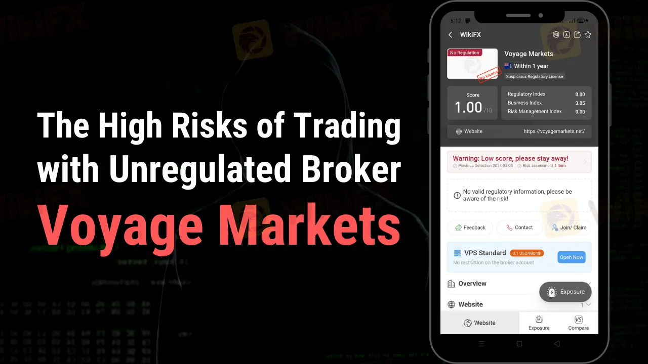 Significant concern is raised by Voyage Markets' lack of regulatory monitoring. Investors are safeguarded against fraud and malpractice by regulation, which guarantees broker adherence to ethical and financial norms. Significant dangers are presented to investors by unregulated brokers, including Voyage Markets, who operate outside of these safeguards. This unlicensed position makes fraudulent acts much more likely, especially when combined with an offshore registration.