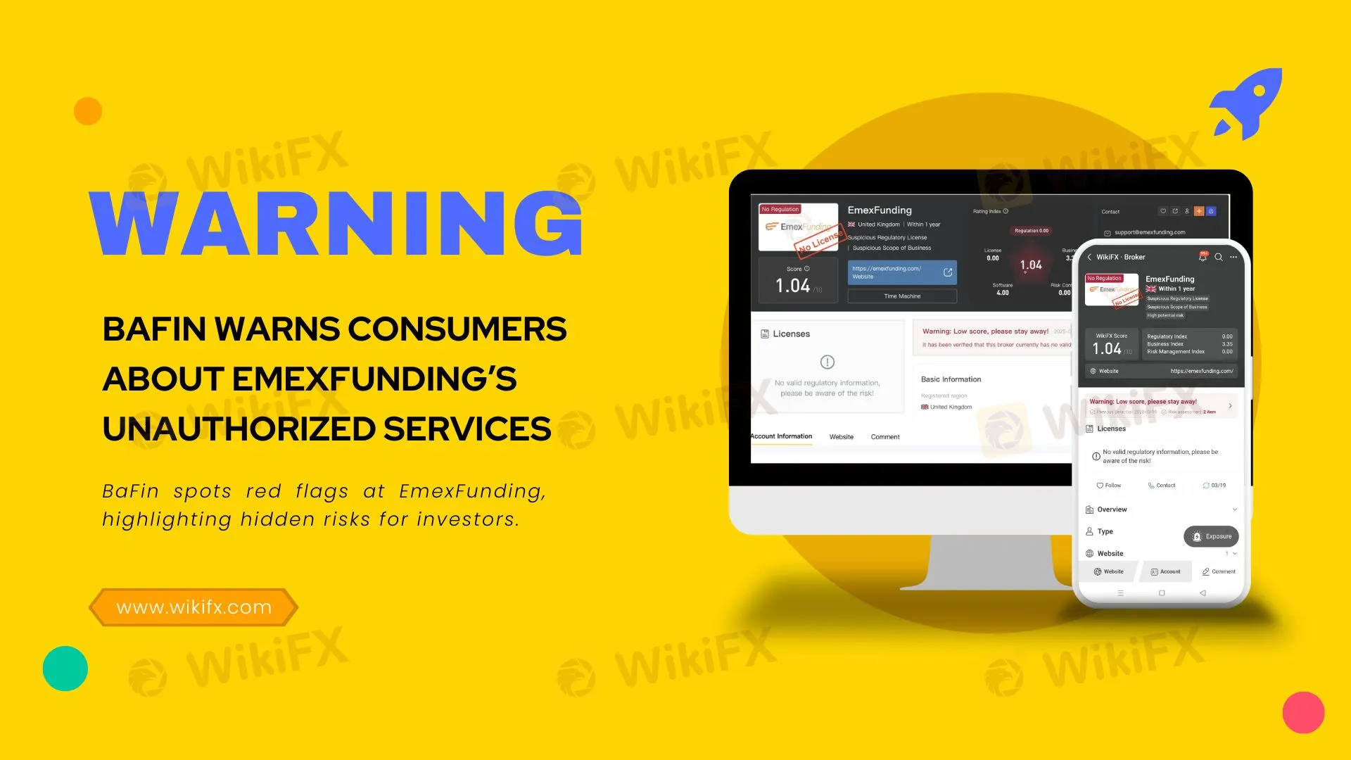 Additionally, a search conducted through the regulatory verification platform WikiFX corroborates BaFin's concerns. WikiFX reports EmexFunding as having no valid regulatory licenses and assigns it a notably low reliability rating, further emphasizing the dangers of engaging with this unauthorized provider.