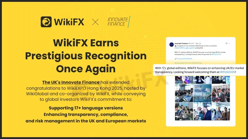 Recently, Innovate Finance, the UKs leading Fintech industry association, warmly congratulated the successful conclusion of WikiEXPO Hong Kong 2025—hosted by WikiGlobal and co-organized by WikiFX—on its official social media channels. The association emphasized that WikiFX, as a globally renowned forex trading information platform, serves users in 180+ countries and regions with 17 language versions, and is committed to enhancing the transparency, compliance, and risk management of financial markets in the UK and Europe, helping investors identify secure and reliable forex trading environments.