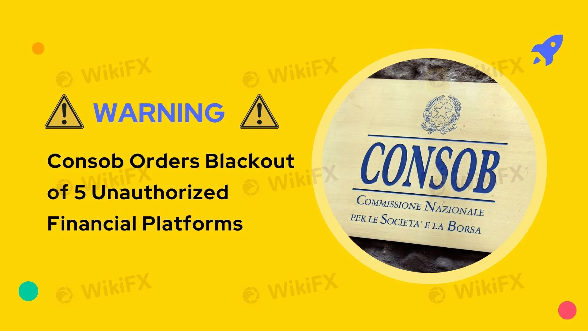 Italys financial regulator Consob has announced a new enforcement action targeting illegal online financial platforms. On May 30, 2025, the regulator ordered the blackout of five platforms found to be offering financial services without proper authorization.