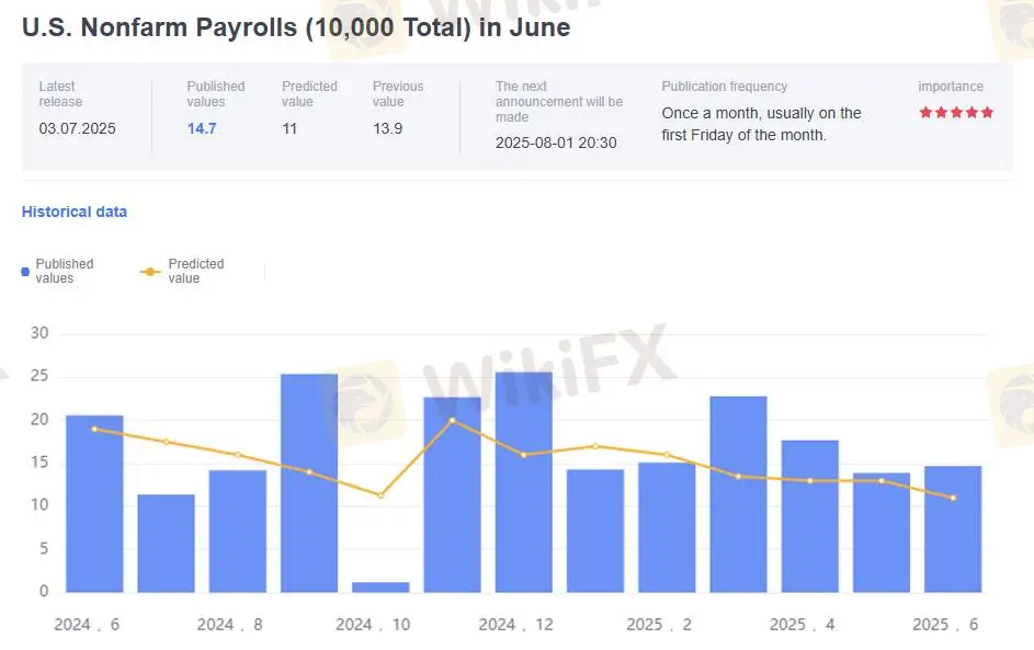 Abstract:1. Overall picture of data: unexpected growth and structural characteristics coexistIn June, non-farm payrolls increased by 147,000, which was higher than the expected 110,000 and the previous value w