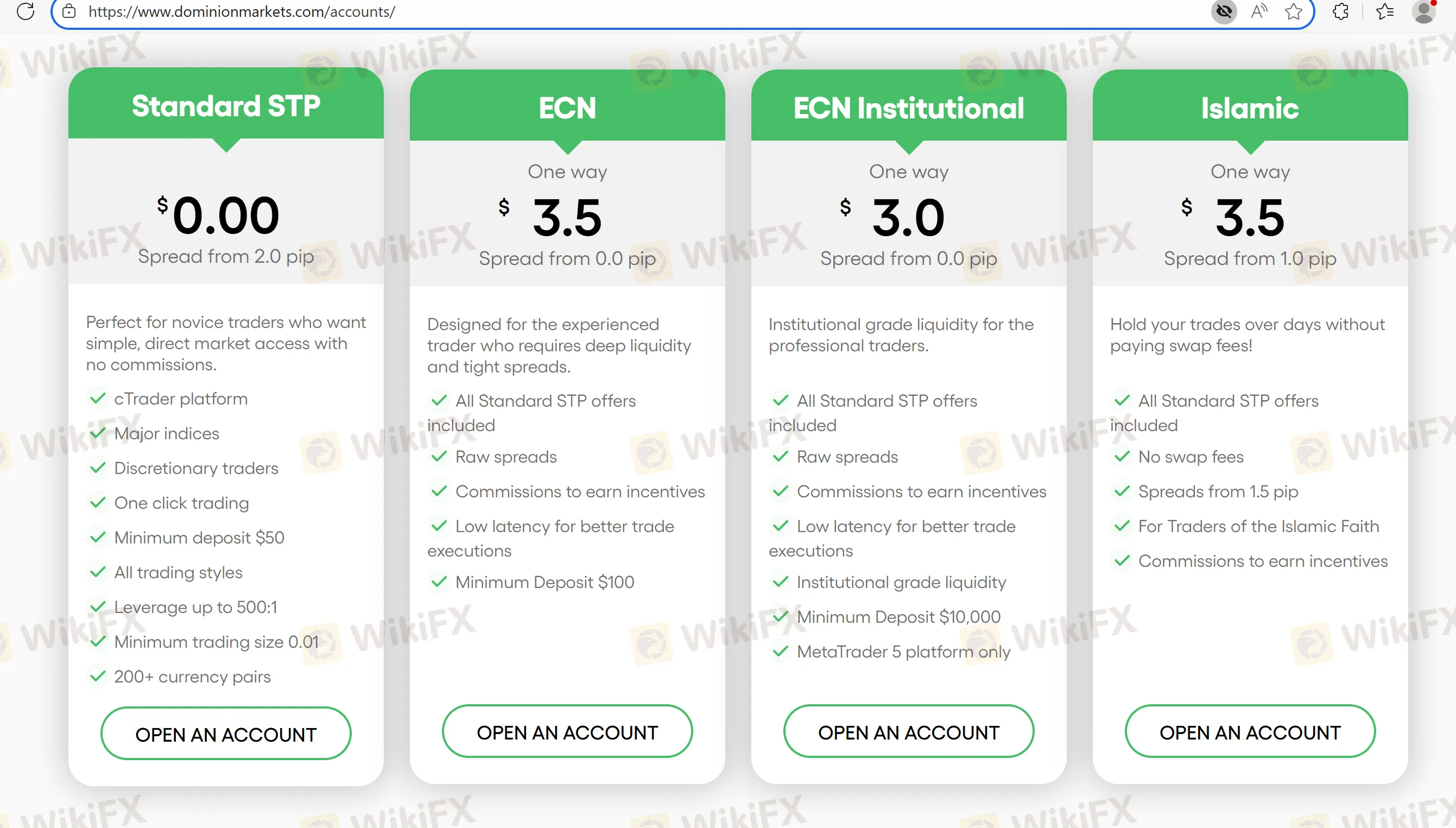 Abstract:Discover all Dominion Markets account types. Compare STP, ECN, and Islamic accounts with spreads, commissions, leverage, and deposit details.