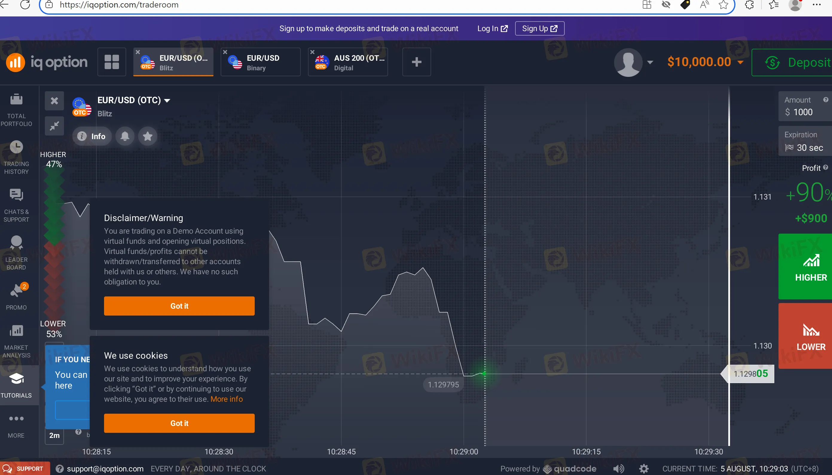 | Real Account | $10 | Up to 1:500 | Full access to trading assets and features |