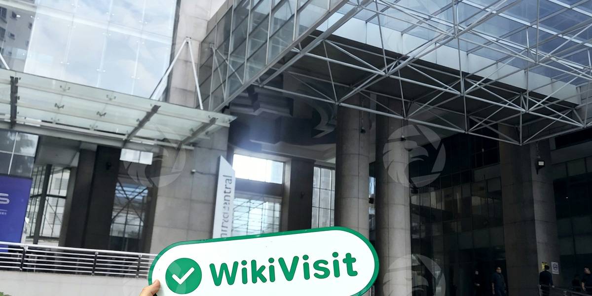 The surveyor came to the front door of the office building and found the building logo at a inconspicuous corner. The surveyor noticed there were two safe guards checking the visitors’ identity information.