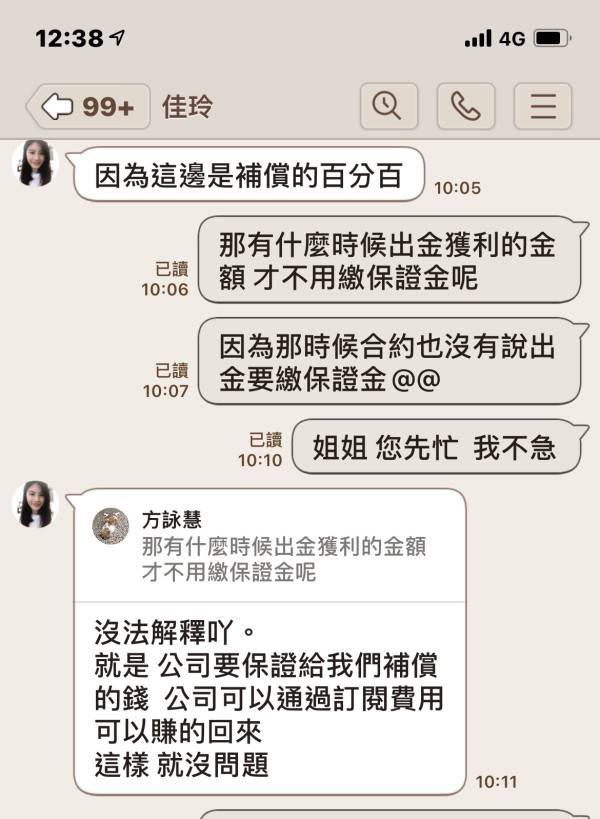 11月底左右接觸出自於洪天峰投顧公司,朱佳玲小姐推薦的量化交易,接觸不到兩個禮拜的時間(約12月初)出現第一次嚴重點滑,當時還有賠賞一半本金及簽合約書。過年前想先出金,結果說要付台幣十萬元保證金,因為要在付保證金所沒有順利出金,直到昨天2/9嚴重點滑後,立馬刪除群組,小姐Line不讀不回、打Line也不接,直接消失!