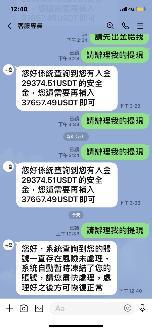 無法出金,繳完稅金,繳完手續費,又說你的帳號有風險,要繳安全金,現在直接凍結我帳護,帳號禁用