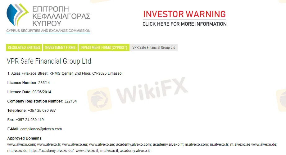 No, Alvexo no es una estafa. Alvexo es propiedad y está operado por VPR Safe Financial Group Limited, una empresa de inversiones de Chipre supervisada y regulada por la Comisión de Bolsa y Valores de Chipre (CySEC) . Además, existe otra entidad de Alvexo, que opera bajo HSN Capital Group Ltd, supervisada y regulada como Agente de Valores por la Autoridad de Servicios Financieros (FSA) de Seychelles .