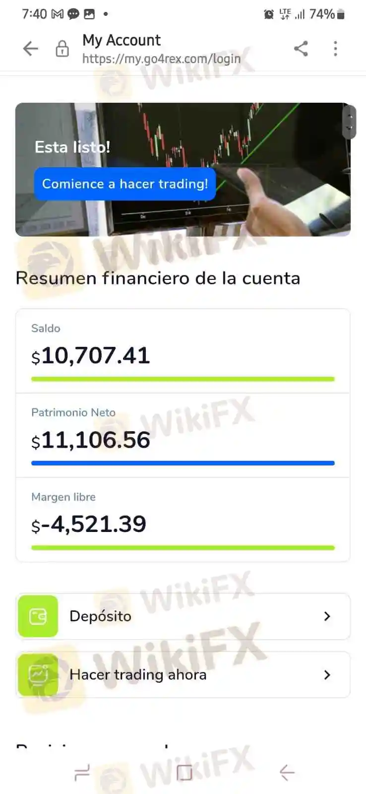 Después de invertir una suma considerable de más de $7540, la cliente descubrió que las cosas no eran lo que parecían. En lugar de ver crecer sus inversiones como se le había prometido, se encontró en medio de una situación donde sus fondos parecían desaparecer inexplicablemente. Lo que es peor, en lugar de recibir asistencia y claridad por parte de GO4REX, fue acosada repetidamente por reclamaciones de deudas supuestamente contraídas.