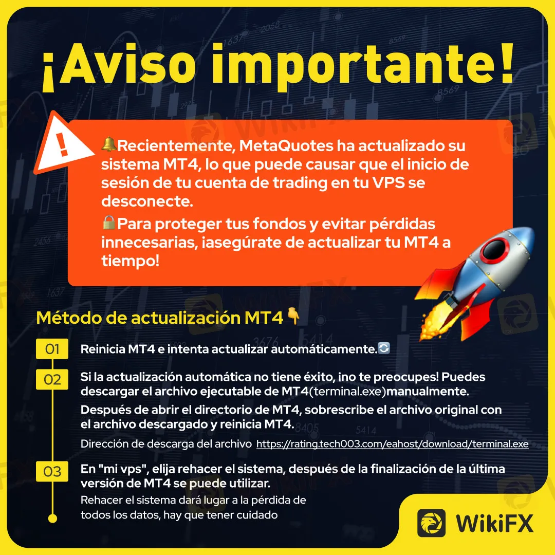 MetaQuotes ha actualizado recientemente su sistema MetaTrader 4 (MT4), una herramienta crucial para muchos traders. Esta actualización puede causar problemas de desconexión con su cuenta comercial si está utilizando un servidor privado virtual (VPS). Para proteger sus fondos y evitar pérdidas innecesarias, es esencial actualizar su sistema MT4 lo antes posible.