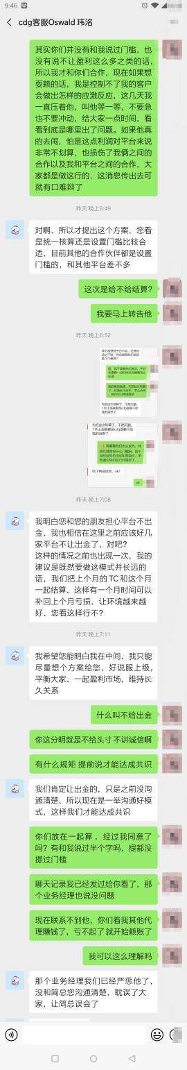 和平台谈好了按月结算15%的头寸,作为代理的回扣,现在竟然赖账说把我的账号和别人的代理混在一起!最终承认是业务经理没说清楚,并且给予惩罚,那个我有什么关系呢?业务经理代表平台,不是个人行为!承诺给的一定要兑现,我2020.12月的头寸 应该结款给我1365美金,这点钱就能赖账,非要我来曝光你们,也真是好意思!下面有我合作商与平台客服的对话,业务经理压根联系不上,就让客服出面!