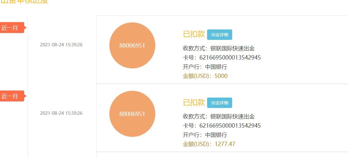 24号申请的出金过了几天以后就扣款了 迟迟没有到账 就去后台客服问 客服一直坚持说他们已经支付过了 我查过银行卡记录 24号之后没有相应的转账记录 之后又去找客服 无论我怎么说客服的回答都是复制粘贴 一个标点符号不带错的 出金不到账就一直说自己已经支付了 这个平台是在太坑了 太无赖了