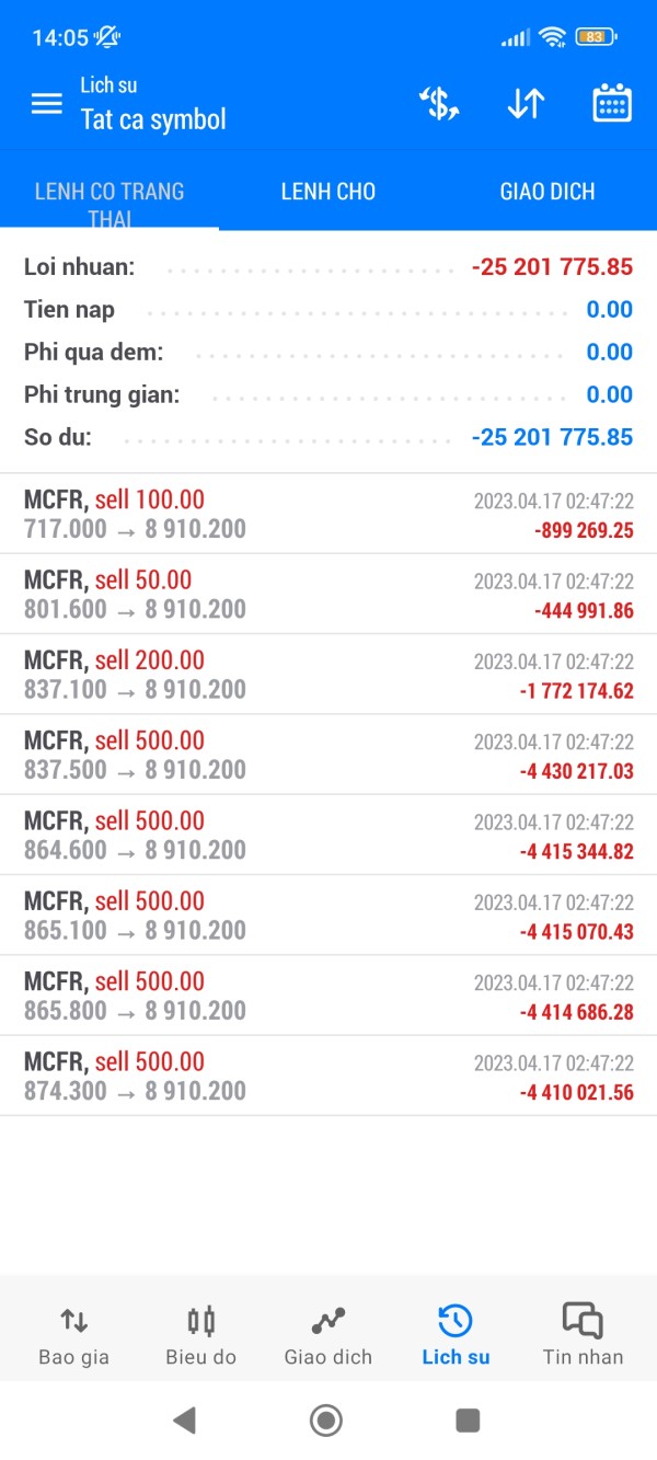 Ngày 17/4/2023, khi bắt đầu mở phiên giao dịch Châu Âu lúc 14h, mã cổ phiếu Loius Vuitton có tình trạng gap giá ảo từ 890 lên 8900 khiến tài khoản của tôi bị cháy và âm số tiền cực kỳ lớn. Tôi đã liên hệ với bộ phận hỗ trợ khách hàng 1900292920 của Sàn HonorFX nhiều lần nhưng nhận được câu trả lời vẫn chỉ là: \'Không có dấu hiệu lỗi, để em báo với Sàn khi nào có kết quả Sàn liên hệ lại\' , " Lỗi do thị trường" nhưng trong ngày hôm đó tôi đã kiểm tra và hoàn toàn không có 1 đơn vị chứng khoán và Sàn giao dịch nào bị lỗi đó. Sau đó 1 số lần tôi gọi thì họ trực tiếp ngắt máy. Ngoài ra tôi đã gửi nhiều mail cho Sàn: support@honorfx.com, support.vietnam@honorfx.com, nhưng cũng không có bất kỳ 1 mail nào phản hồi.
