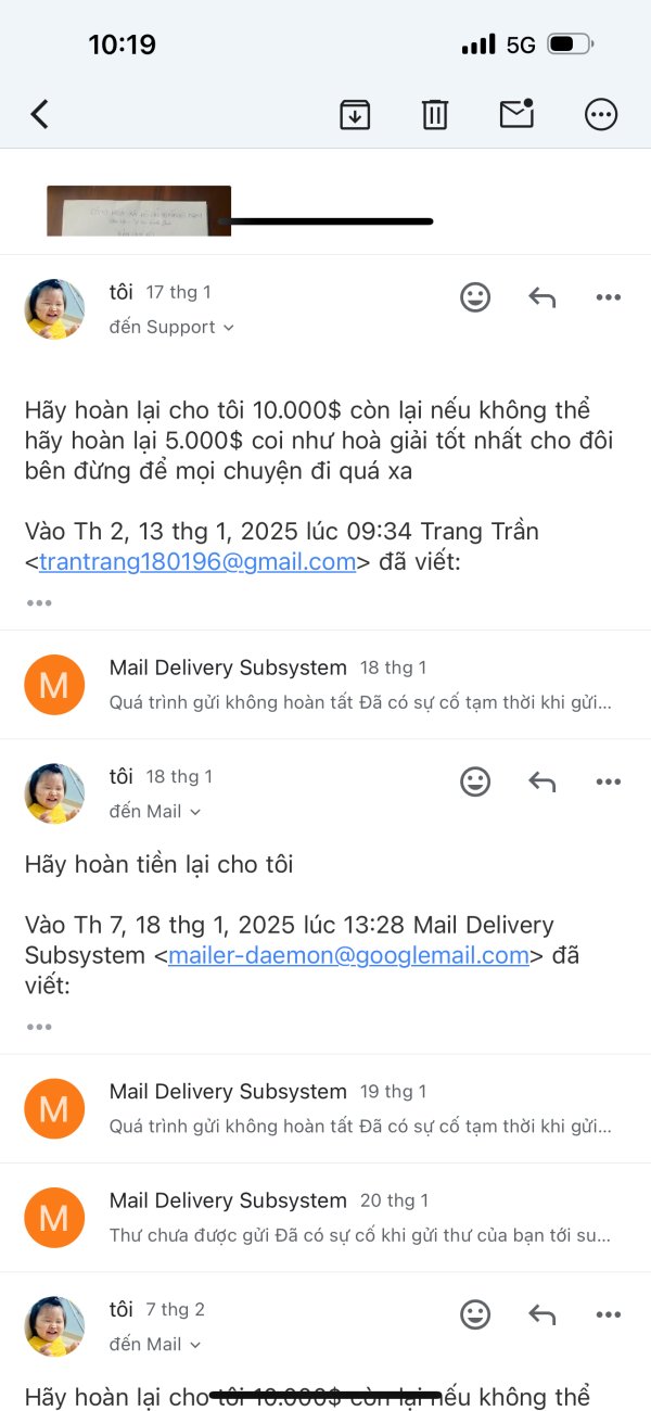 sàn không hoàn tiền còn chặn tất cả các thư của tôi gửi tới yêu cầu hianf tiền bồi thường cho tôi khong truy cập được đường link