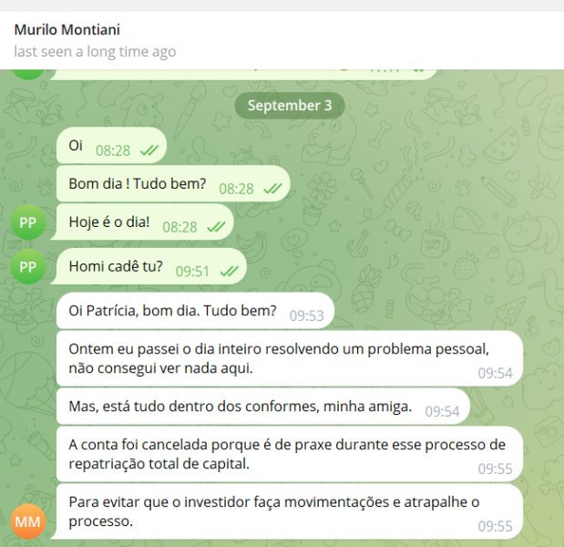 A empresa Questh X agora é a empresa Questh X Pro. Houve a mudança no início de Julho de 2025. Segue o novo site: https://questhxpro.com/ Essa empresa faz vc trabalhar de graça! Vc faz operações para aumentar o lucro da conta que vc acha que é sua, mas na verdade vc é só uma mão de obra gratuita, já que nunca será devolvido o seu investimento e o lucro gerado na conta. A empresa utiliza táticas profissionais para ganhar confiança: ligações diárias, instalação de software, promessas de recuperação e repatriamento dos valores. Incentiva novos aportes, explorando perdas iniciais, bloqueio de valores. No final de agosto de 2025, fui informada pelo meu analista Murilo Montiani que eu poderia finalizar o contrato e que os valores investidos seriam repatriados até o dia 03/09/2025. A empresa bloqueou o meu acesso a plataforma e desaparece junto com os analistas Murilo Montiani e Diego Villar após o pagamento final do "imposto"/aporte, resultando em roubo total dos investimentos.