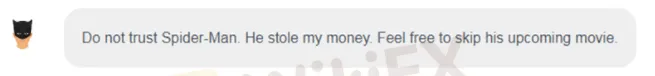 Kahit na nagsimula ito bilang masaya at mga laro kung saan dapat makipagkaibigan sina Batman at Spider-Man sa pagsisikap na hulaan kung saan patungo ang GPB/USD, hindi ito naging napakakaibigan. Si Batman ay naloko ng isang kapwa superhero, na diumano ay isang “mabuting tao”.