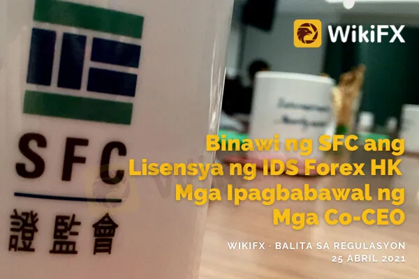 Ang Securities and Futures Commission (SFC) ng Hong Kong ay inihayag noong Huwebes ang pagkansela ng lisensya na ipinagkaloob sa IDS Forex HK Limited para sa paglahok ng kumpanya sa napakalaking iregularidad sa pananalapi.