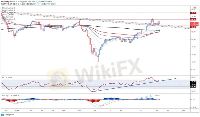 Balita sa Pananalapi ng WikiFX (Ika-25 ang Abril taong 2021) - Technical Forecast ng Crude Oil : Kakulangan ng Momentum sa Foster Consolidation.