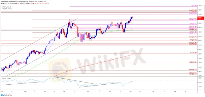 Balita sa Pananalapi ng WikiFX (Ika-4 ng Hunyo taong 2021) - Forecast sa Presyo ng Langis : Ang pagbagsak ng mataas sa buwan ng Marso ay nagbabawas ng dobleng nangungunang pagbuo.