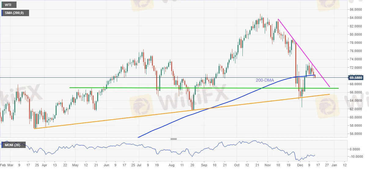 Pagsusuri sa Presyo ng WTI: Bumababa pabalik sa 200-DMA, ang mga nagbebenta ay tumitingin ng $65.00