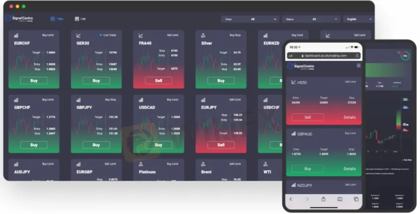 Acuity Trading bought Signal Centre last year, and it is an FCA-regulated supplier of independent technical analysis and market research. Signal Centre was founded in 2018 to concentrate on PIA First's analytical research arm and its expansion into the retail trading platform sector to satisfy the demand for high quality, fast, and accurate market analysis with clear, structured trade ideas and signals developed by skilled traders and analysts. Signal Centre's multi-asset signals, strategy, and analysis are accessible in a variety of languages and via a variety of delivery methods, including MT4/5, API, widgets, email, and instant messaging services such as Telegram, Facebook, WhatsApp, WeChat, and SMS.