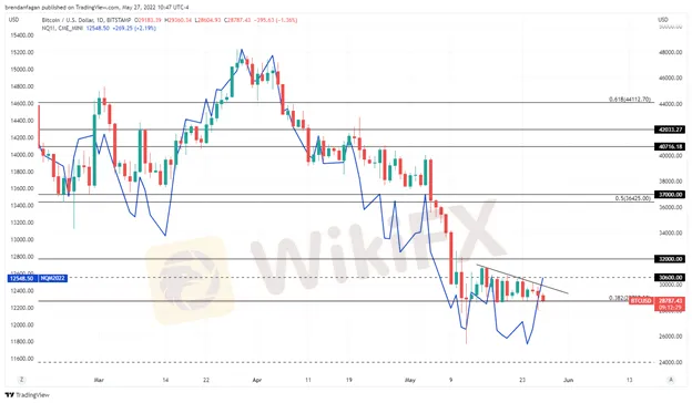 Gaya ng nabanggit, nagkaroon ng kapansin-pansing pagkakaiba sa pagitan ng mga equities at bitcoin ngayong linggo dahil ang panganib ay nakakuha ng relief bid. Bagama't nabigo ang Bitcoin na sundan ito sa Nasdaq peer na mas mataas, hanggang ngayon ay patuloy itong humawak ng suporta sa Fibonacci sa paligid ng $28,730. Ang upside momentum ay nalimitahan ng matigas na pagtutol sa $30,600 pati na rin ang isang pababang trendline na nabuo sa nakalipas na ilang linggo. Ang pagbuo ng pababang tatsulok na ito ay maaaring magpahiwatig na ang isang breakout ay maaaring malapit na sa mga card.