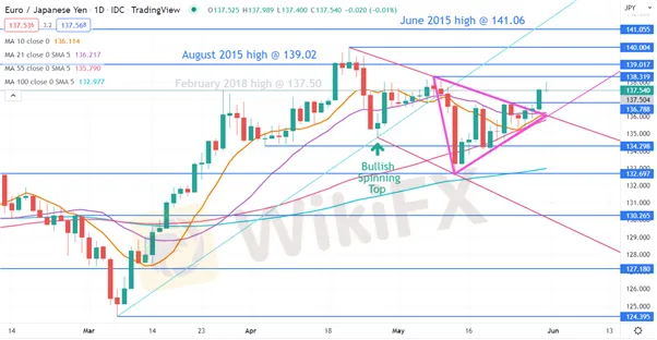 Sinira ng cross rate ang tuktok na bahagi ng isangPennant f ormationat potensyal na nakatakda upang subukan ang posibleng paglaban sa kamakailang mataas na 138.32.