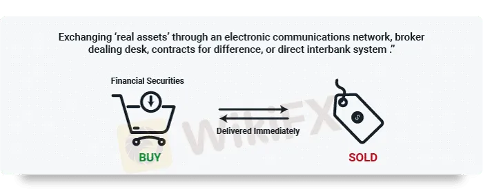 Spot Market: ang pinakasikat sa tatlo, kung saan ang mga mangangalakal sa buong mundo ay nagpapalitan ng 'real asset' sa pamamagitan ng electronic communications network, broker dealing desk, contracts for difference, o direktang interbank system. Ang mga presyo sa spot market ay nakabatay sa supply at demand.