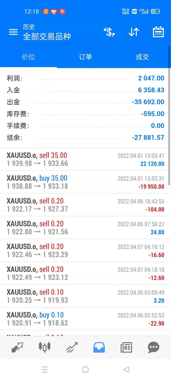 限制出金,要求交税,不然不让出金,而且一直诱导入金才能解决问题,然后账户里面的余额一直在变化,此时已经没有单子在手上了。