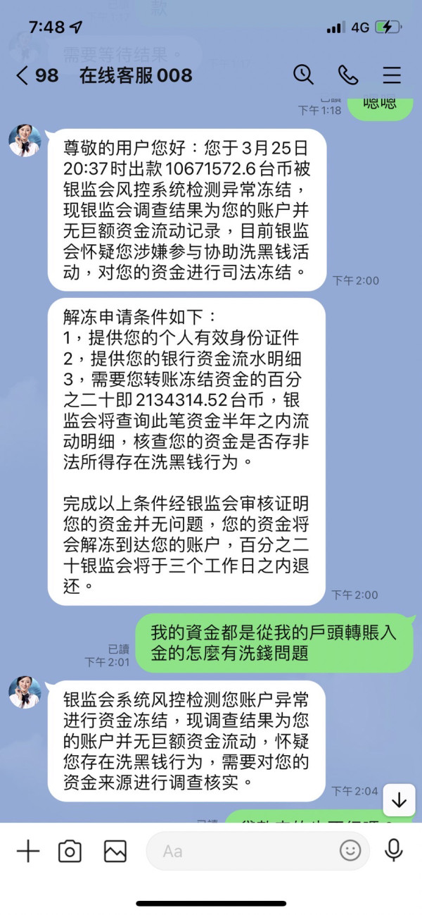 要出金時一直刁難不出金要求要交稅、交易異常要凍結、解凍後又說銀監會懷疑洗錢凍結資金要再叫20%保證金,後面直接不處理