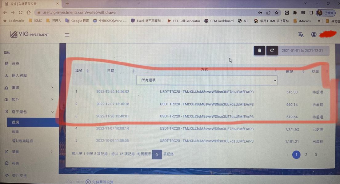 去年11月底開始申請出金,就全部都卡在待處理的狀態,至今都沒出金。