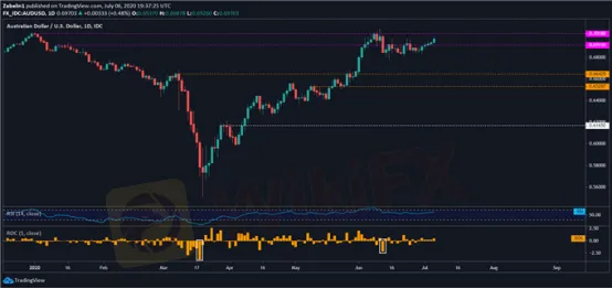 WikiFX News (mardi 7 juillet 2020) - Toutes les 3 indices de la bourse américaine ont augmenté lundi. La préférence du risque est susceptible de s'étendre au marché asiatique et pacifique, et de pousser la bourse asiatique et pacifique vers une croissance. Les résolutions de la RBA (la Banque de Réserve d‘Australie) sur les taux d'intérêts du mois de juillet, étant disponibles bientôt, deviendraient le plus gros risque dans la plage horaire asiatique et pacifique, qui pousserait l’AUD vers le point focal du marché.