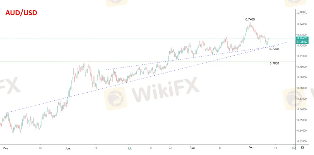 WikiFX News (jeudi 10 septembre 2020) - Mercredi, le taux d‘AUD/USD a rechuté de 0,7400 à 0,7200, qui n’a pas baissé au-dessous de son soutien situé entre 0,7200 et 0,7180. De ce fait, il a bien maintenu sa tendance haussière.