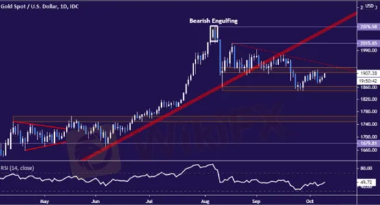 WikiFX News (samedi 10 octobre 2020) - Récemment, la préférence pour les risques s‘est reprise, soutenant la tendance du prix de l’or et celle du pétrole brut. Pourtant, comme Donald Trump a changé à plusieurs reprises de son attitude envers la négociation sur la stimulation financière américaine, le progrès dans cette négociation devrait être la condition primordiale pour que l'or et le pétrole puissent enchaîner leur augmentation.