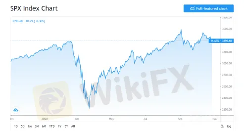WikiFX News (mercredi 28 octobre 2020) - Les données financières américaines qui ont été publiées récemment montrent un résultat plutôt, mais à cause du sentiment d‘inquiétude avant la Présidentielle américaine et de la régression de l’espoir de la mise en service du plan de relance, le marché se retourne vers le sentiment d‘aversion aux risques. Mardi, depuis son point haut mensuel de 3541, l’indice S&P 500 a baissé de 5%.