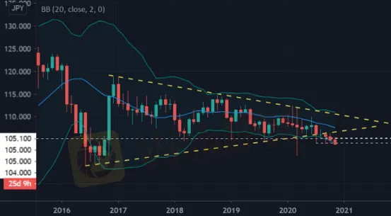 WikiFX News (vendredi 6 novembre 2020) - Jeudi, le résultat de la Présidentielle US reste toujours en suspens. Dans les marchés financiers, les bourses américaines ont augmenté d‘environ 1%, alors que l’indice USD a largement baissé. Cependant, contrairement à la prévision, le JPY s'est mis dans une tendance haussière. Par conséquent, la paire USD/JPY devrait accélérer sa baisse.