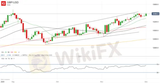 WikiFX News (mercredi 2 décembre 2020) - Mardi, la paire GBP/USD a enregistré une hausse de 0,8%, la hausse cumulée de cette paire depuis son point bas en septembre s‘est élevé à 6%. La perspective sur un accord trouvé entre le Royaume-Uni et l’UE lors de la négociation Brexit se trouve actuellement en bonne voie. La Livre Sterling devrait donc enchaîner sa hausse.