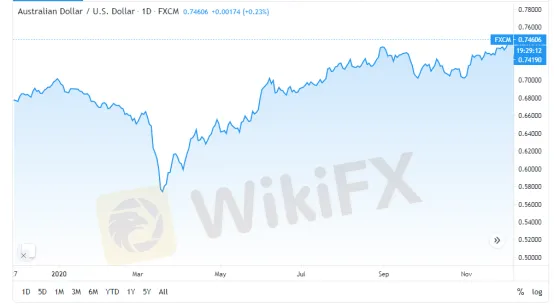 WikiFX News (jeudi 10 décembre 2020) - Plus tôt dans cette semaine, la paire AUD/USD a créé le nouveau point haut annuel à 0,7454, puis a réalisé mercredi une augmentation de 0.5%. La tendance récente du dollar australien s'est fait diriger par le risque et le dollar américain. La tendance haussière de cette paire devrait être enchaînée.